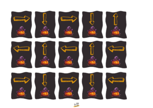 ⚠️ UWAGA: Nie musimy odkrywać wszystkich pomieszczeń ani znajdować wszystkich skarbów. Jeśli czarownik utknie na dolnym poziomie, a pragniemy odkryć pomieszczenia na górze, poproś dziecko, aby wytyczyło strzałkami ścieżkę jak prawdziwy mag-koder 🧭✨ do niezbadanego pokoju. Dziecko układa strzałki jedna po drugiej, by czarownik dotarł do miejsca pełnego tajemnic.